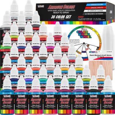 Customer Reviews U S Art Supply 36 Color Acrylic Airbrush Paint Set Opaque Pearl Colors Plus Reducer Cleaner Mixing Supplies Color Mixing Wheel Bed Bath Beyond